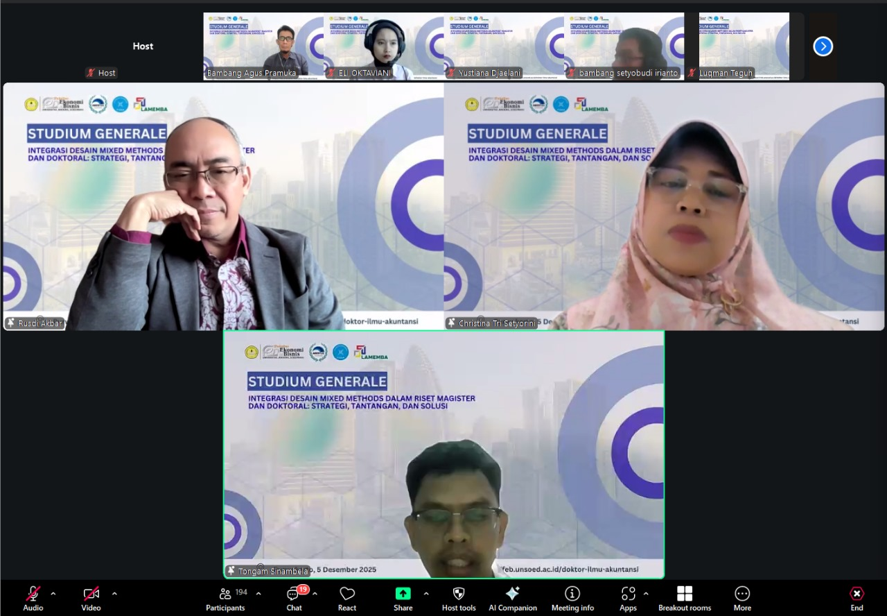 Studium Generale Program Doktor Ilmu Akuntansi FEB Unsoed Angkat Integrasi Mixed Methods dalam Riset Pascasarjana