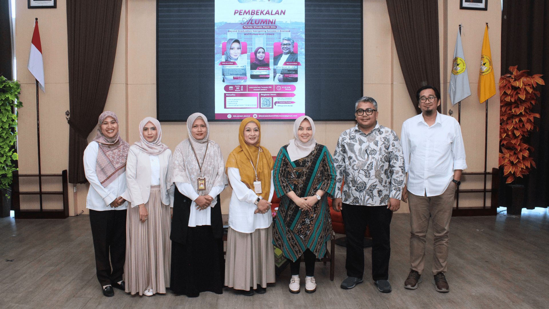 Purwokerto, 30 Maret 2026 – Telah diselenggarakan agenda rutin pembekalan alumni periode Maret 2026 dengan tema “Beyond Graduation: Navigating Success in Business and Professional Careers” pada Senin, 30 Maret 2026. Kegiatan ini diselenggarakan oleh Laboratorium Pengembangan Karir, Bahasa Asing & Pusat Alumni Fakultas Ekonomi dan Bisnis (FEB) Unsoed bersama FEB Unsoed yang dilaksanakan di Laboratorium Terpadu FEB Unsoed Lantai 6. Peserta pembekalan merupakan alumni FEB Unsoed periode wisuda Maret 2026 sejumlah 201 orang.